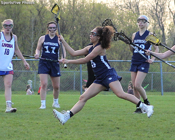 Eastridge scored the last seven goals of the game to defeat Livonia 10-9 in the first overtime period. The Lancers trailed 9-3 with 19:47 remaining in regulation before slowly coming back into the game in the final twenty minutes. The Bulldogs controlled the early part of the game both in score and in the pace of the contest before the Lancers started their scoring streak.