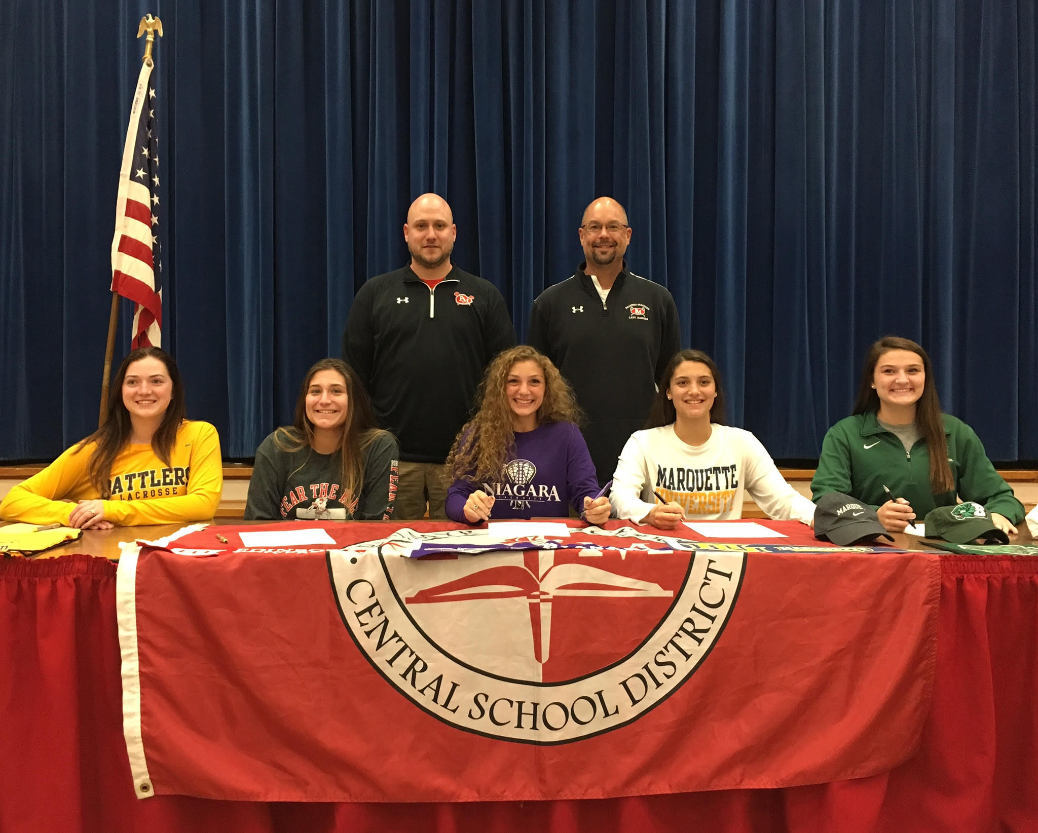 Congratulations to the five Pal-Mac Girls' Varsity Lacrosse players who signed letters of intent today! Cierra Scheik..Niagara, Anna Leva..Edinboro, Sophia Leva..Marquette, Aldyn Savage..Binghamton, Bailey Boesel..Alderson Broaddus Also Pictured Head Coach E.J. Burse and Asst Caoch Chris Mahnke