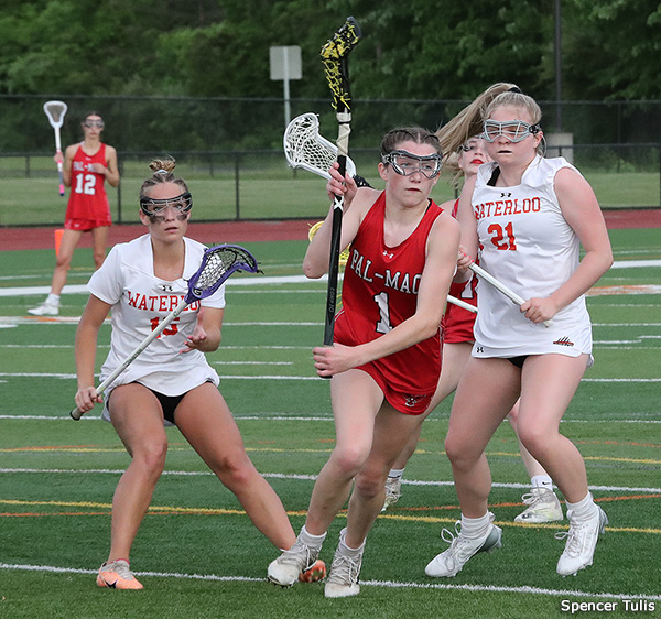 PAL-MAC-19 at WATERLOO-4 - For the Red Raiders, it was their seventh consecutive win. Eight players scored for No. 3 Pal-Mac (14-4), including Teagan Hudak (2g/3a), Anna Priebe (4g/1a), Reagan Diehl (4g), Jenna Santelli (3g), and Lily Boesel (3g), and Isabelle Cole had five saves. Ninth-grader Peyton Lyons had five saves for No. 2 Waterloo, including her 100th of the season. Maci Mueller and Lainie Forde each scored two goals for the Tigers, who finish their season with a record of 13-5. Pal-Mac meets No. 1 Penn Yan in the class D final on Tuesday. [ BOX SCORE]