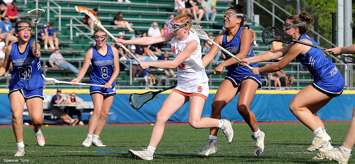 LANCASTER-7 at FAIRPORT-12 - The Red Raiders built a 7-2 first-quarter lead en route to their second straight NYS class A semifinal berth. Ella Peers led Fairport (13-6) with four goals, two assists, and six draw controls. Katie Mallaber added three goals and Brenna Goss chipped in two more. It was Fairport’s second win in consecutive years over Lancaster (VI) in the NYS quarterfinal round. The Red Raiders move on to Cortland, where they will take on Massapequa (VIII) Friday in a rematch of last year’s class A final. [ BOX SCORE]
