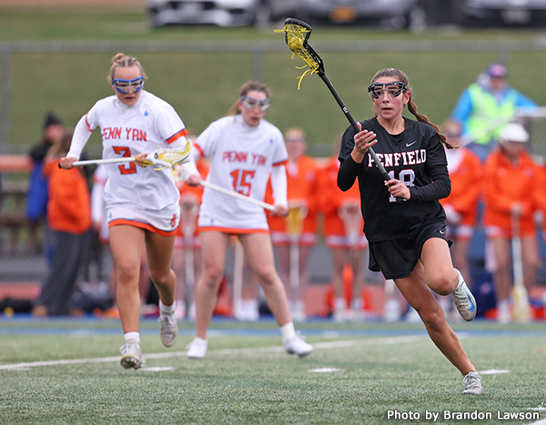 PENFIELD-15 at PENN YAN-7 - Penfield defeated Penn Yan 15-7 in a non-league game. Whitney Reynolds and Jenna Capozzi led Penfield's scoring, while Bailey Cooper and Ruby Berry combined for six of Penn Yan's seven tallies. Penfield goalie Karis Hand had four saves in 48 minutes of play.     [ Story Continues in BOX SCORE